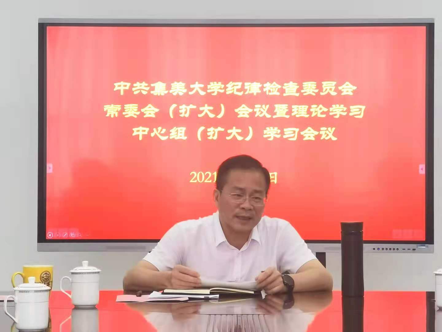 7月1日下午,校党委常委、纪委书记、监察专员童建福主持召开校纪委常委会(扩大)会议暨理论学习中心组(扩大)学习会议,学习习近平总书记在庆祝中国共产党成立一百周年大会上的重要讲话精神、在庆祝中国共产党成立100周年“七一勋章”颁授仪式上的重要讲话精神。校纪委常委、全体纪检监察干部及巡察干部参加会议。
