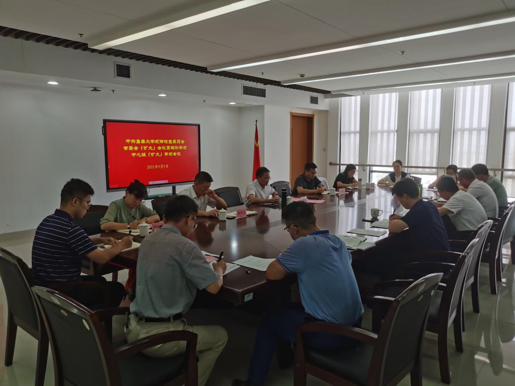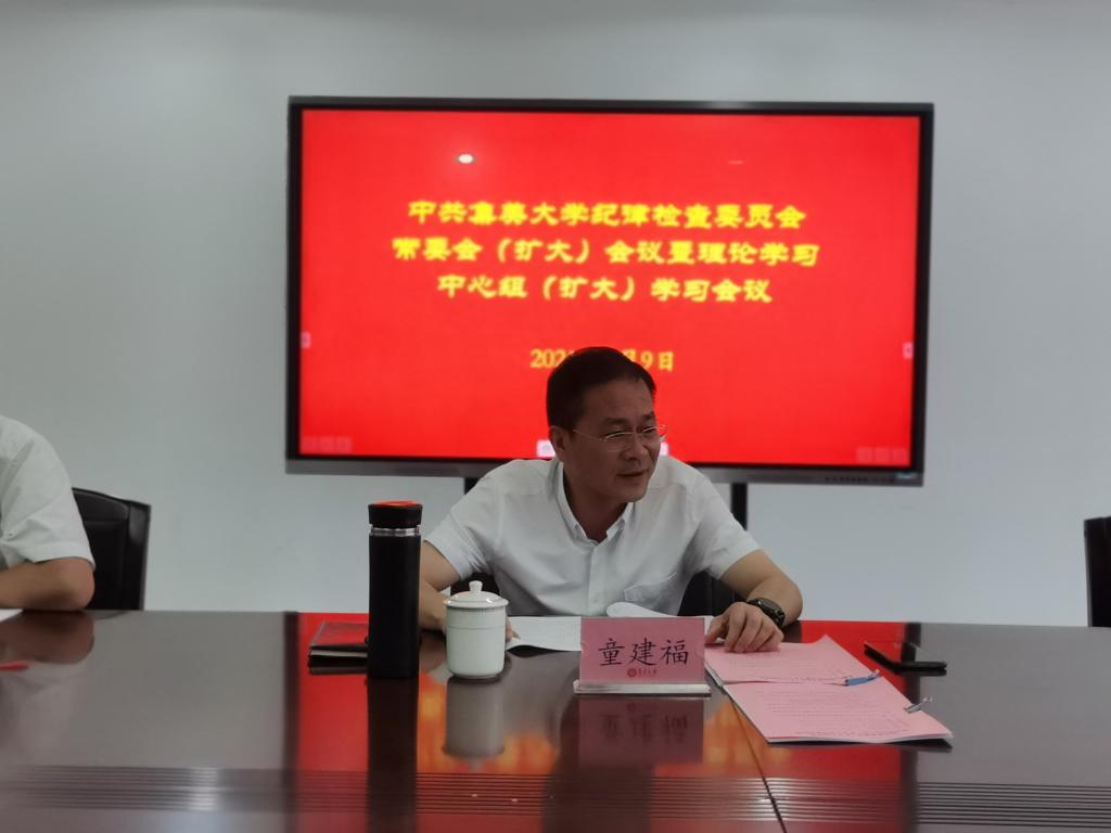 9月9日下午,校党委常委、纪委书记、监察专员童建福主持召开校纪委常委会(扩大)会议暨理论学习中心组(扩大)学习会议,学习习近平总书记重要讲话重要指示批示精神及中央纪委领导讲话精神,研究2021年下半年主要工作。校纪委常委、全体纪检监察干部及巡察干部参加会议。