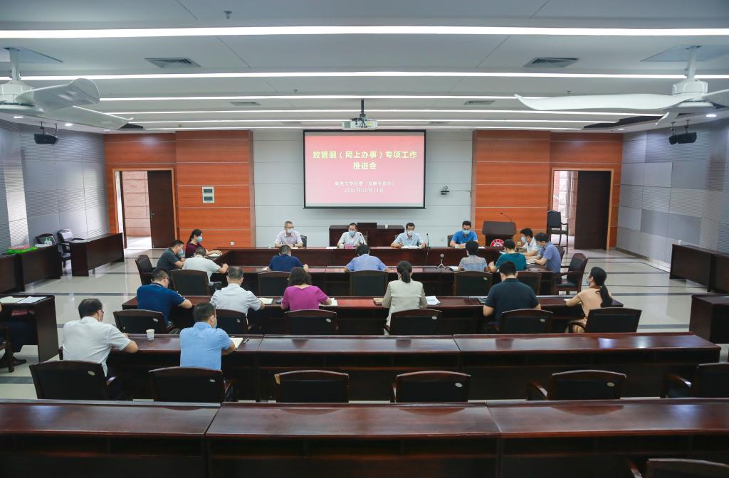 10月14日,我校召开放管服(网上办事)专项工作推进会。会议由校党委常委、纪委书记、监察专员童建福主持召开,相关部门负责人参加了会议。