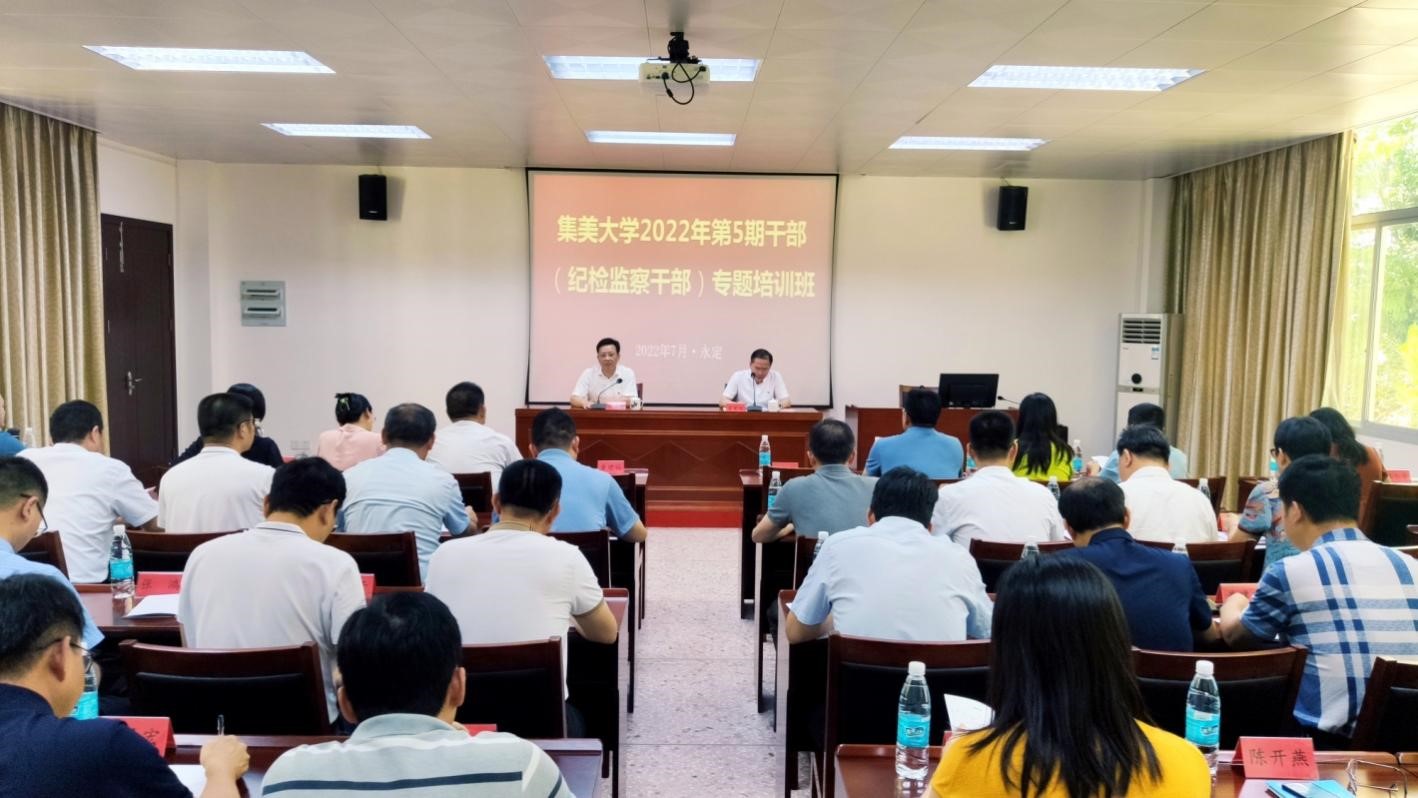 7月9至11日,我校举办集美大学2022年第五期干部(纪检监察干部)专题培训班。9日下午,培训班举行了开班式,校党委书记沈灿煌作开班动员讲话,开班式由校党委常委、纪委书记、监察专员童建福主持。校纪委委员、二级纪委书记(纪检委员)、专职纪检监察干部、巡察干部、巡察组组长等参加了培训。