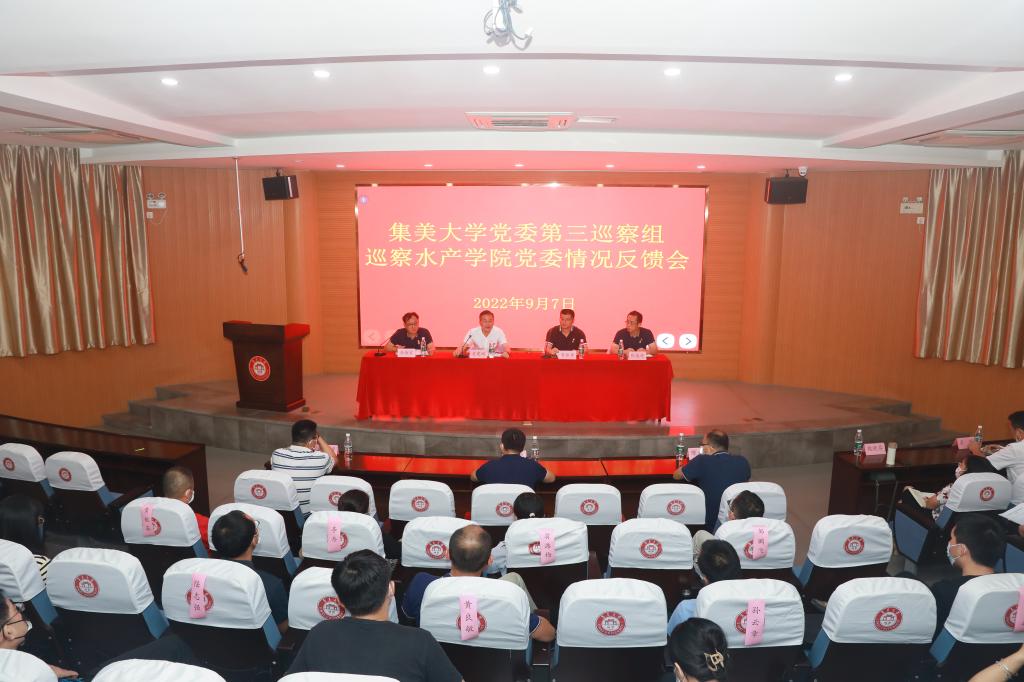 校党委三个巡察组组长分别向航海学院党委、轮机工程学院党委、水产学院党委领导班子反馈了巡察情况。三个学院党委书记分别代表党委班子作表态发言,表示对巡察组反馈的问题,诚恳接受、照单全收、坚决整改。