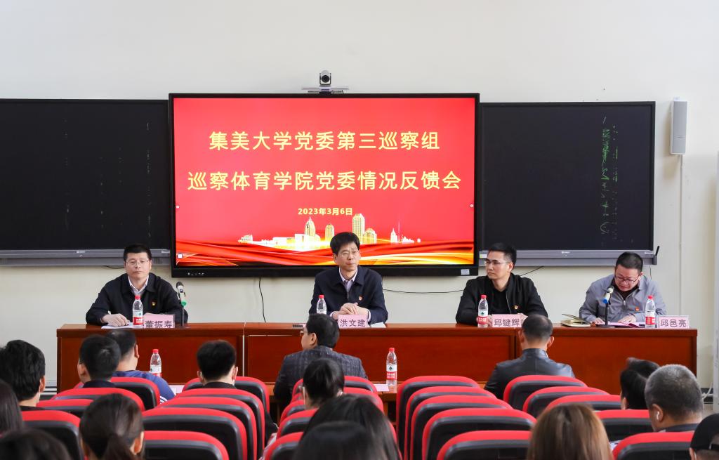 根据校党委巡察工作统一部署,3月6日,校党委三个巡察组分别向海洋食品与生物工程学院党委、体育学院党委、财经学院党委反馈巡察情况。