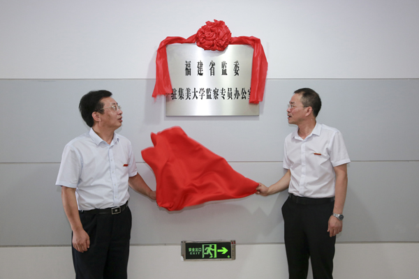 根据福建省纪委监委统一部署,6月28日上午,“福建省监委驻集美大学监察专员办公室”正式挂牌。7月1日上午,我校举行“福建省监委驻集美大学监察专员办公室”揭牌仪式,校党委书记沈灿煌、纪委书记童建福出席并共同揭牌。
